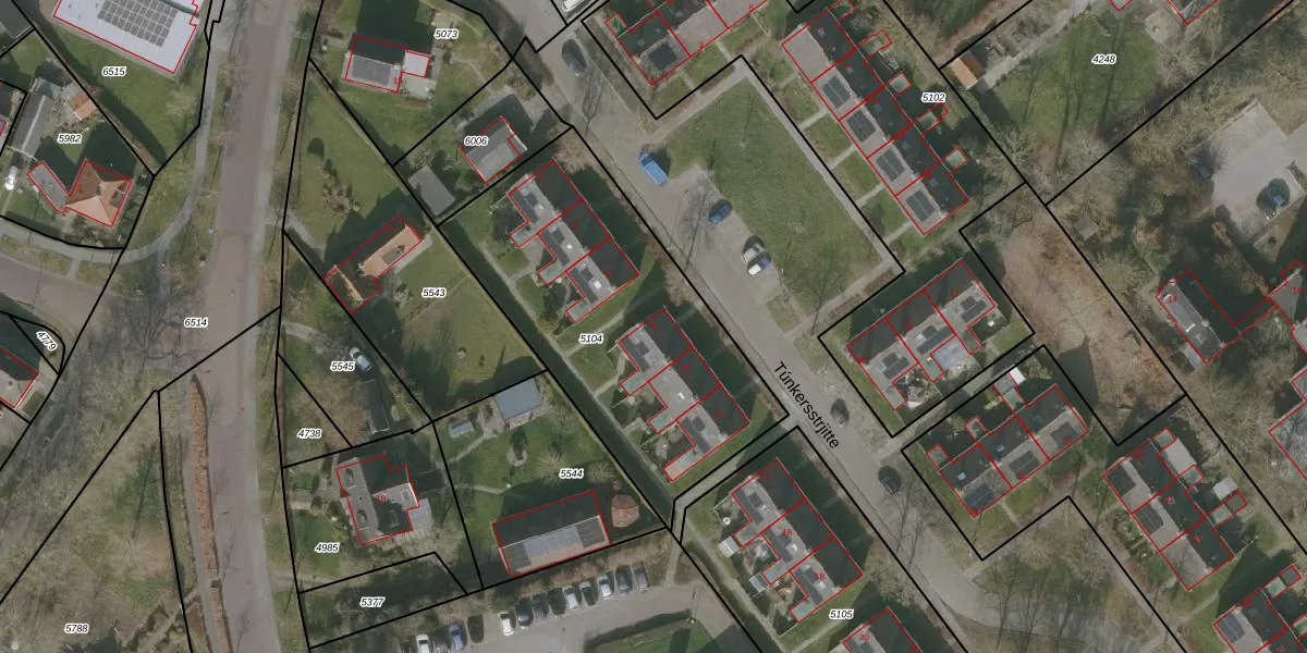 Het perceel waarop Túnkersstrjitte 8 staat heeft een oppervlakte van 1415 m². Dit is een zeer groot perceel. De perceeloppervlakte wordt geregistreerd door het Kadaster. Gedetailleerde informatie over de maten van dit perceel kunt u vinden in het rapport Kadastrale kaart met maatvoering van Túnkersstrjitte 8.