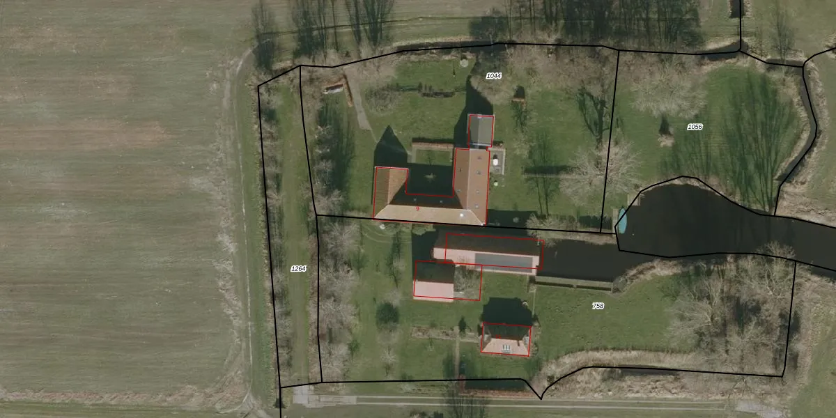 Het perceel waarop Nr 9 staat heeft een oppervlakte van 2975 m². Dit is een zeer groot perceel. De perceeloppervlakte wordt geregistreerd door het Kadaster. Gedetailleerde informatie over de maten van dit perceel kunt u vinden in het rapport Kadastrale kaart met maatvoering van Nr 9.