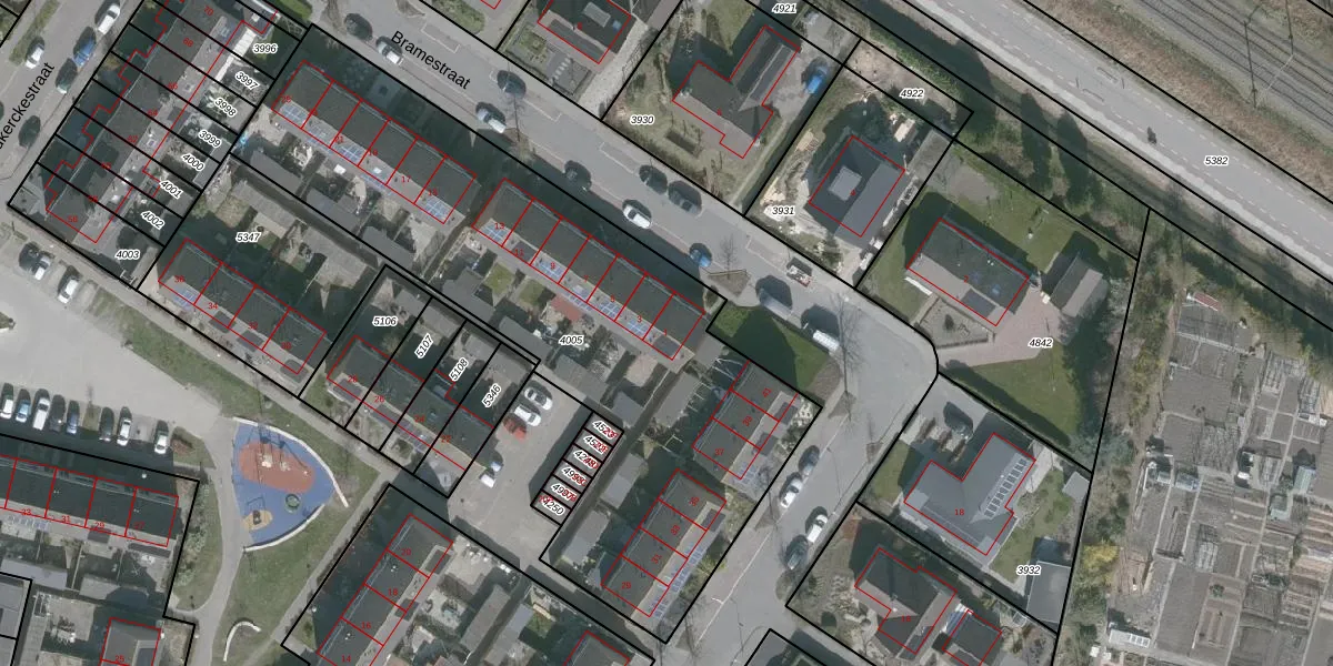 Bramestraat 1 is gelegen op kadastraal perceel KBD00C4005. Deze kadastrale aanduiding is uniek en wordt gebruikt door het Kadaster om eigendomsrechten en andere zakelijke rechten vast te leggen. Het perceel maakt onderdeel uit van de kadastrale gemeente Krabbendijke.