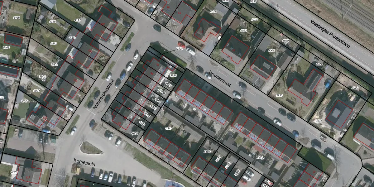 Het perceel waarop Bramestraat 23 staat heeft een oppervlakte van 2689 m². Dit is een zeer groot perceel. De perceeloppervlakte wordt geregistreerd door het Kadaster. Gedetailleerde informatie over de maten van dit perceel kunt u vinden in het rapport Kadastrale kaart met maatvoering van Bramestraat 23.