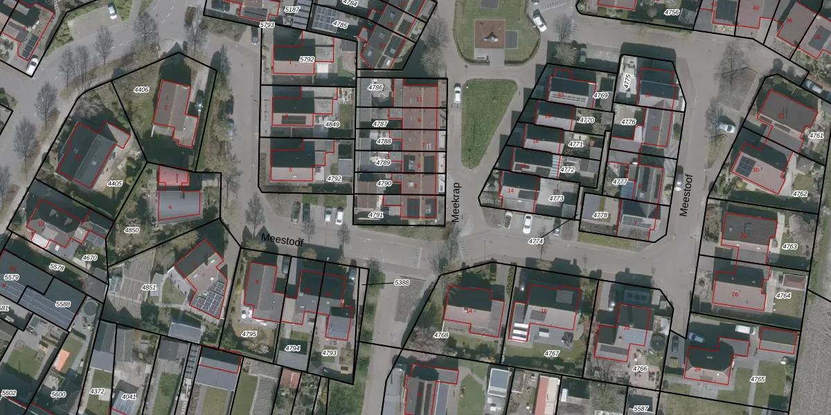 Het perceel waarop Meekrap 1 staat heeft een oppervlakte van 163 m². Dit is een middelgroot perceel. De perceeloppervlakte wordt geregistreerd door het Kadaster. Gedetailleerde informatie over de maten van dit perceel kunt u vinden in het rapport Kadastrale kaart met maatvoering van Meekrap 1.