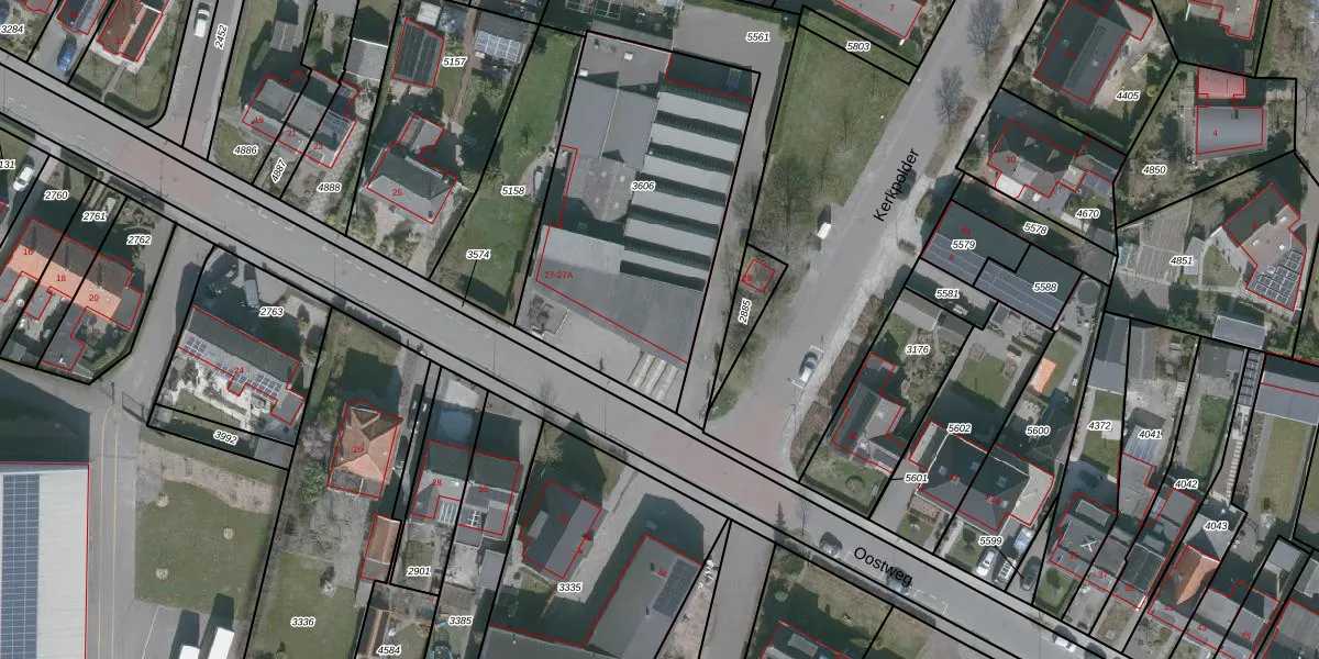 Oostweg 27-A is gelegen op kadastraal perceel KBD00C3606. Deze kadastrale aanduiding is uniek en wordt gebruikt door het Kadaster om eigendomsrechten en andere zakelijke rechten vast te leggen. Het perceel maakt onderdeel uit van de kadastrale gemeente Krabbendijke.