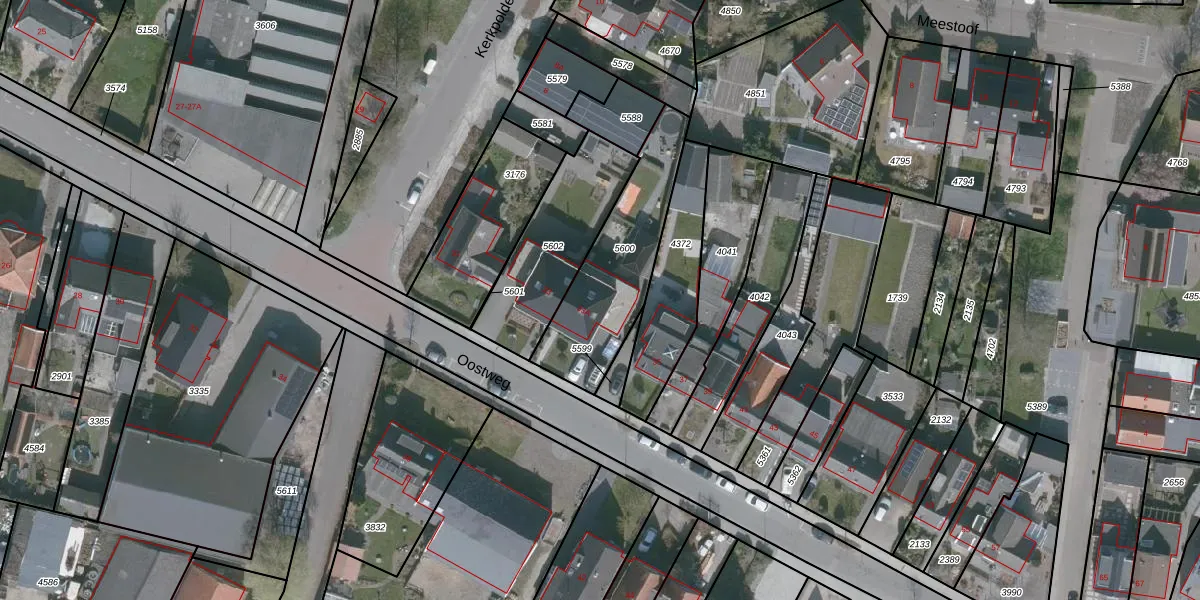 Oostweg 33-A is gelegen op kadastraal perceel KBD00C5600. Deze kadastrale aanduiding is uniek en wordt gebruikt door het Kadaster om eigendomsrechten en andere zakelijke rechten vast te leggen. Het perceel maakt onderdeel uit van de kadastrale gemeente Krabbendijke.