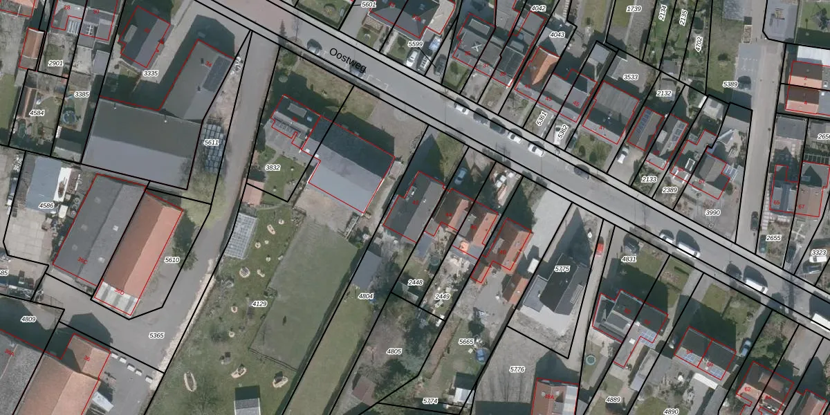 Het perceel waarop Oostweg 42 staat heeft een oppervlakte van 987 m². Dit is een groot perceel. De perceeloppervlakte wordt geregistreerd door het Kadaster. Gedetailleerde informatie over de maten van dit perceel kunt u vinden in het rapport Kadastrale kaart met maatvoering van Oostweg 42.