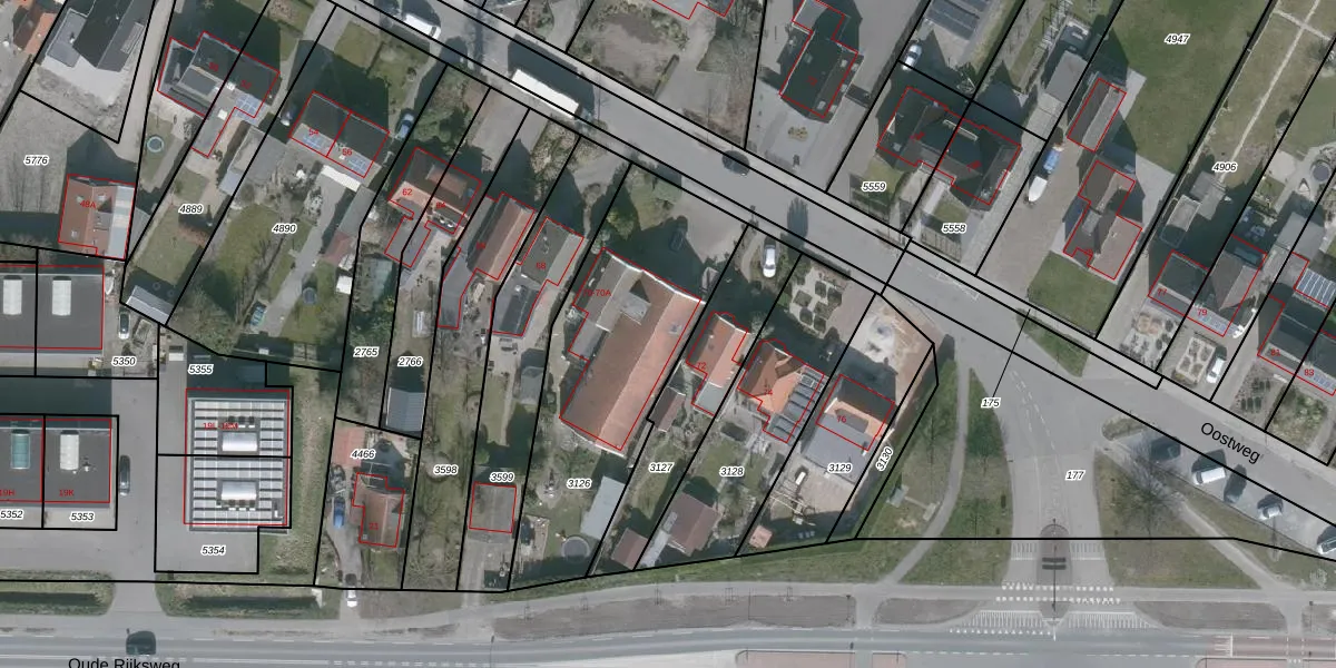 Het perceel waarop Oostweg 70-A staat heeft een oppervlakte van 1052 m². Dit is een zeer groot perceel. De perceeloppervlakte wordt geregistreerd door het Kadaster. Gedetailleerde informatie over de maten van dit perceel kunt u vinden in het rapport Kadastrale kaart met maatvoering van Oostweg 70-A.
