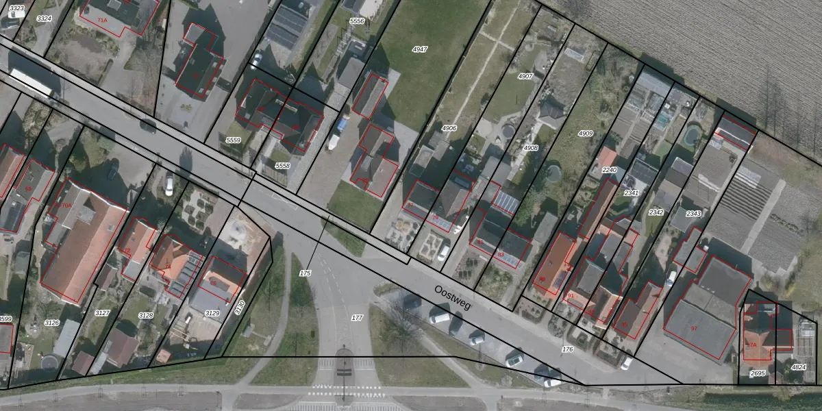Het perceel waarop Oostweg 77 staat heeft een oppervlakte van 747 m². Dit is een groot perceel. De perceeloppervlakte wordt geregistreerd door het Kadaster. Gedetailleerde informatie over de maten van dit perceel kunt u vinden in het rapport Kadastrale kaart met maatvoering van Oostweg 77.