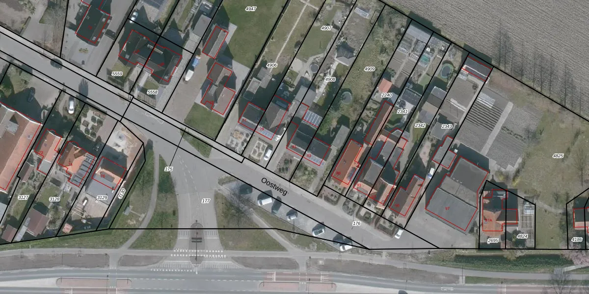 Het perceel waarop Oostweg 81 staat heeft een oppervlakte van 634 m². Dit is een groot perceel. De perceeloppervlakte wordt geregistreerd door het Kadaster. Gedetailleerde informatie over de maten van dit perceel kunt u vinden in het rapport Kadastrale kaart met maatvoering van Oostweg 81.