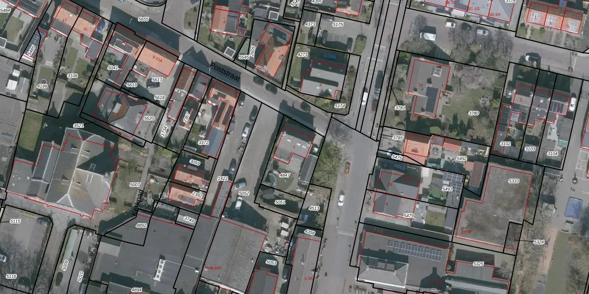 Het perceel waarop Poststraat 1 staat heeft een oppervlakte van 361 m². Dit is een groot perceel. De perceeloppervlakte wordt geregistreerd door het Kadaster. Gedetailleerde informatie over de maten van dit perceel kunt u vinden in het rapport Kadastrale kaart met maatvoering van Poststraat 1.