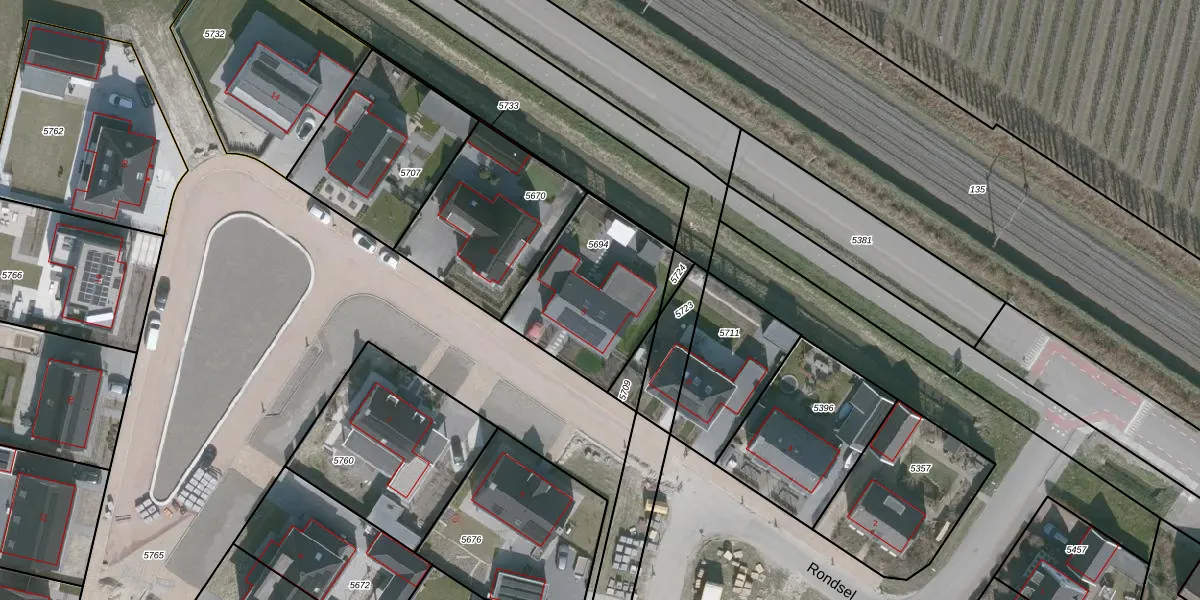 Het perceel waarop Rondsel 8 staat heeft een oppervlakte van 536 m². Dit is een groot perceel. De perceeloppervlakte wordt geregistreerd door het Kadaster. Gedetailleerde informatie over de maten van dit perceel kunt u vinden in het rapport Kadastrale kaart met maatvoering van Rondsel 8.