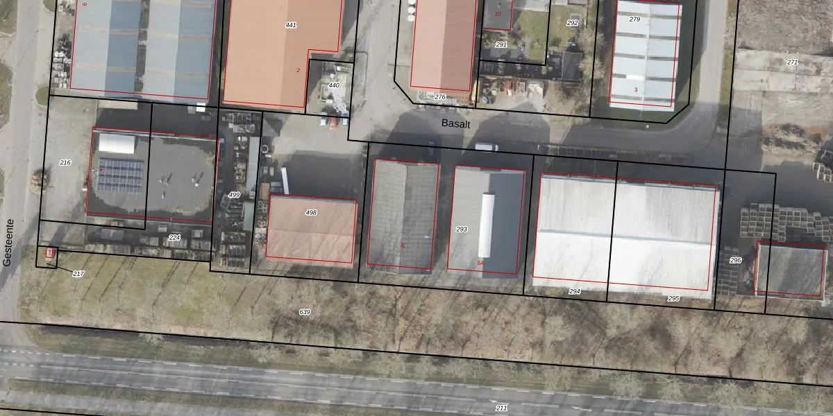Het perceel waarop Basalt 6 staat heeft een oppervlakte van 1347 m². Dit is een zeer groot perceel. De perceeloppervlakte wordt geregistreerd door het Kadaster. Gedetailleerde informatie over de maten van dit perceel kunt u vinden in het rapport Kadastrale kaart met maatvoering van Basalt 6.