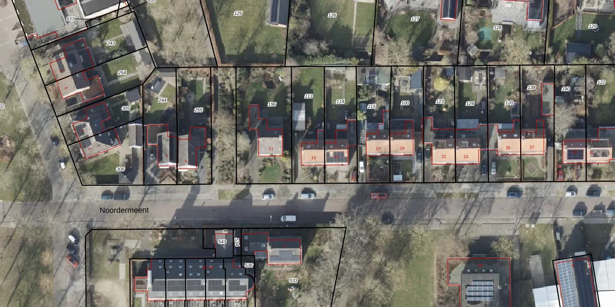 Het perceel waarop Noordermeent 13 staat heeft een oppervlakte van 406 m². Dit is een groot perceel. De perceeloppervlakte wordt geregistreerd door het Kadaster. Gedetailleerde informatie over de maten van dit perceel kunt u vinden in het rapport Kadastrale kaart met maatvoering van Noordermeent 13.