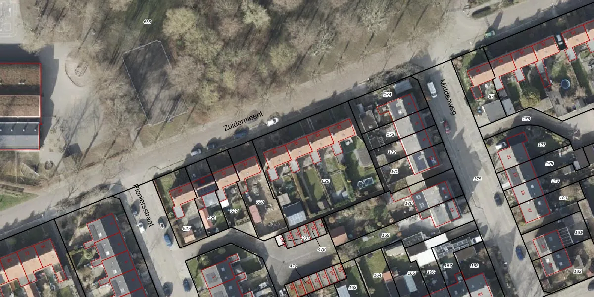 Het perceel waarop Zuidermeent 38 staat heeft een oppervlakte van 1161 m². Dit is een zeer groot perceel. De perceeloppervlakte wordt geregistreerd door het Kadaster. Gedetailleerde informatie over de maten van dit perceel kunt u vinden in het rapport Kadastrale kaart met maatvoering van Zuidermeent 38.