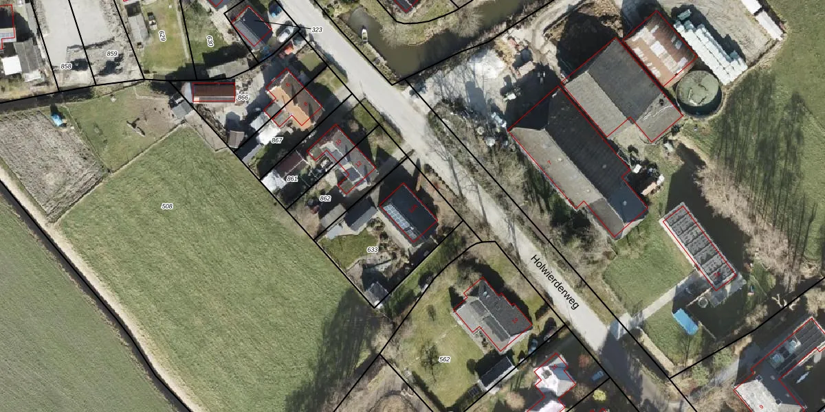Het perceel waarop Holwierderweg 12-A staat heeft een oppervlakte van 640 m². Dit is een groot perceel. De perceeloppervlakte wordt geregistreerd door het Kadaster. Gedetailleerde informatie over de maten van dit perceel kunt u vinden in het rapport Kadastrale kaart met maatvoering van Holwierderweg 12-A.