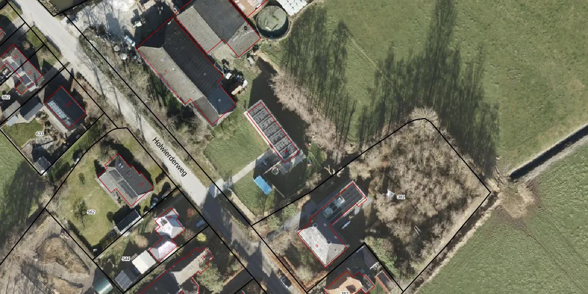 Het perceel waarop Holwierderweg 7-a staat heeft een oppervlakte van 11,1 ha. Dit is een zeer groot perceel. De perceeloppervlakte wordt geregistreerd door het Kadaster. Gedetailleerde informatie over de maten van dit perceel kunt u vinden in het rapport Kadastrale kaart met maatvoering van Holwierderweg 7-a.