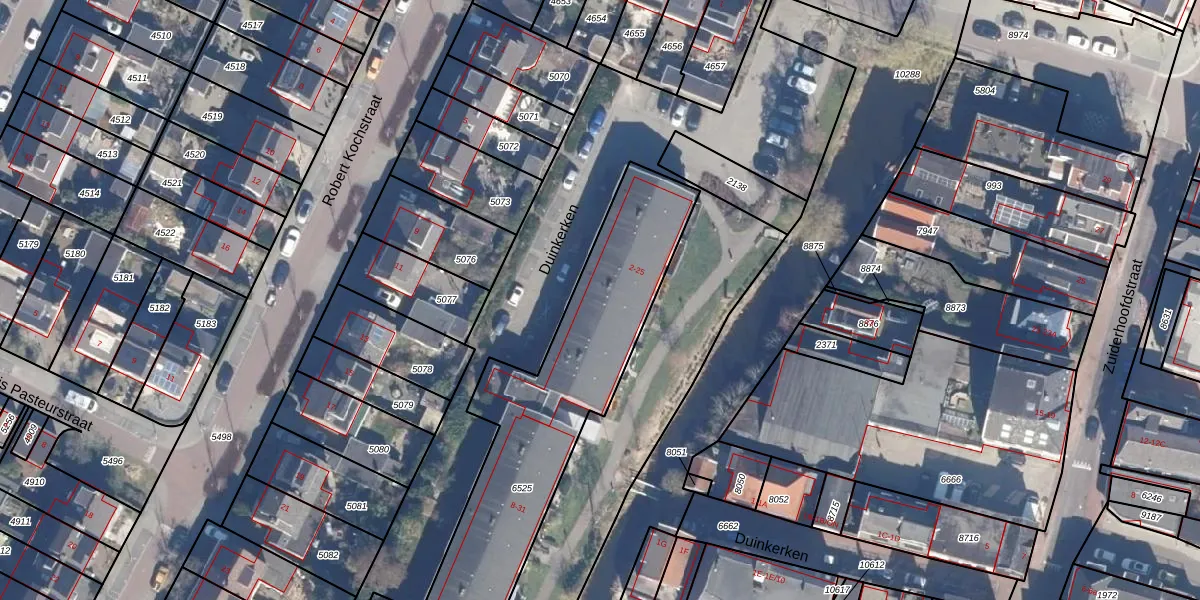 Het perceel waarop Duinkerken 23 staat heeft een oppervlakte van 1774 m². Dit is een zeer groot perceel. De perceeloppervlakte wordt geregistreerd door het Kadaster. Gedetailleerde informatie over de maten van dit perceel kunt u vinden in het rapport Kadastrale kaart met maatvoering van Duinkerken 23.
