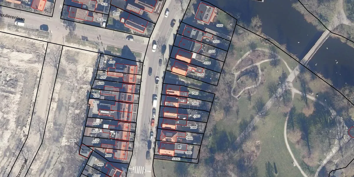 Gebruik de zoekbalk of klik op een perceel voor informatie over de adressen binnen dit perceel.