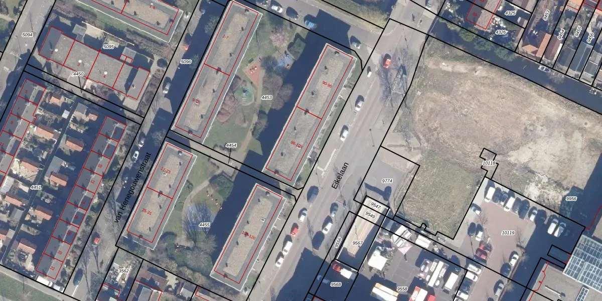 Eikelaan 98 is gelegen op kadastraal perceel KMN01B4453. Deze kadastrale aanduiding is uniek en wordt gebruikt door het Kadaster om eigendomsrechten en andere zakelijke rechten vast te leggen. Het perceel maakt onderdeel uit van de kadastrale gemeente Krommenie.