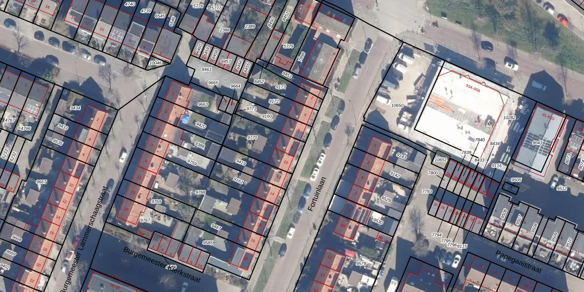 Het perceel waarop Fortuinlaan 8 staat heeft een oppervlakte van 307 m². Dit is een groot perceel. De perceeloppervlakte wordt geregistreerd door het Kadaster. Gedetailleerde informatie over de maten van dit perceel kunt u vinden in het rapport Kadastrale kaart met maatvoering van Fortuinlaan 8.