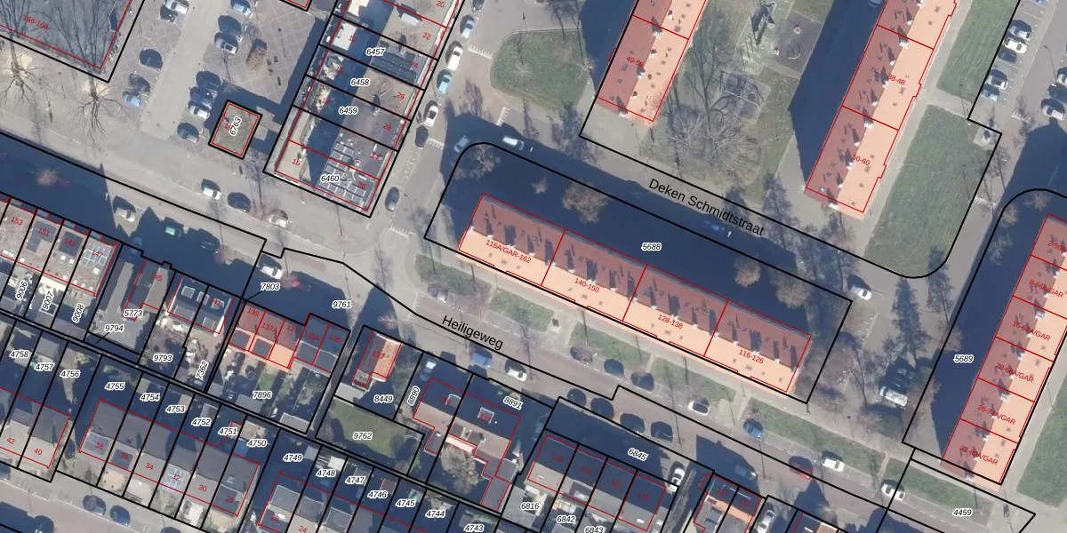 Heiligeweg 134-A-GAR is gelegen op kadastraal perceel KMN01B5688. Deze kadastrale aanduiding is uniek en wordt gebruikt door het Kadaster om eigendomsrechten en andere zakelijke rechten vast te leggen. Het perceel maakt onderdeel uit van de kadastrale gemeente Krommenie.