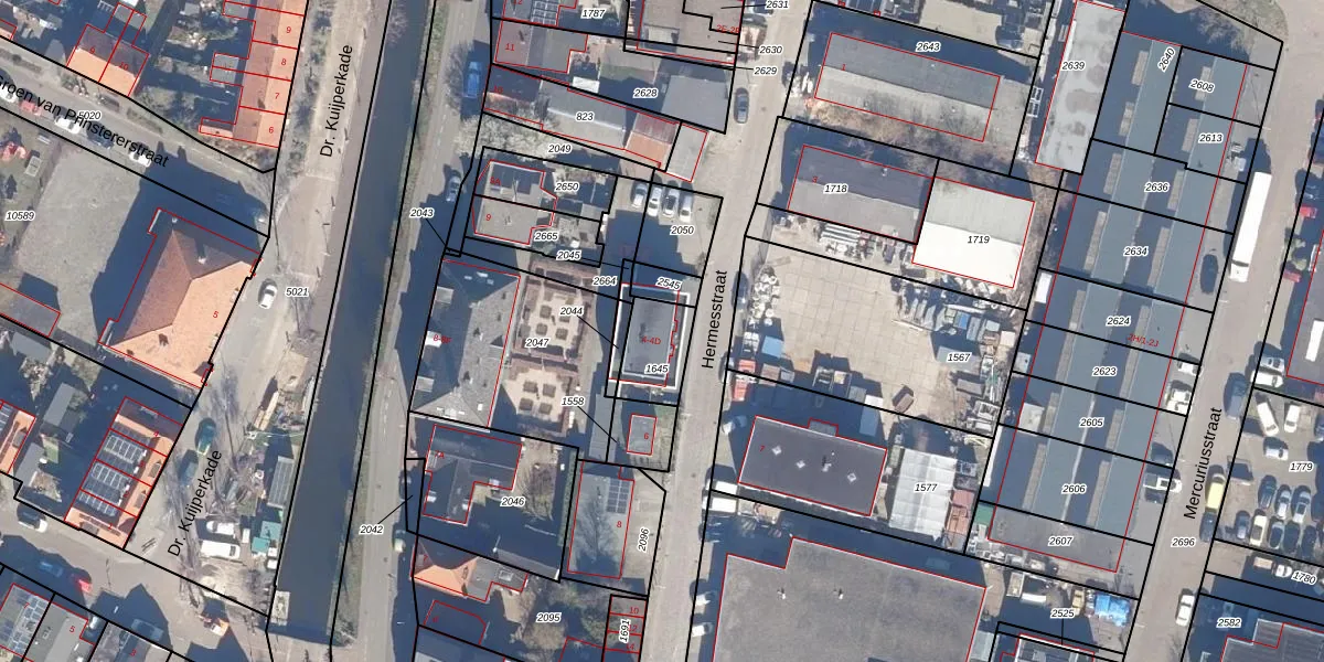 Hermesstraat 4 is gelegen op kadastraal perceel KMN01A1645. Deze kadastrale aanduiding is uniek en wordt gebruikt door het Kadaster om eigendomsrechten en andere zakelijke rechten vast te leggen. Het perceel maakt onderdeel uit van de kadastrale gemeente Krommenie.