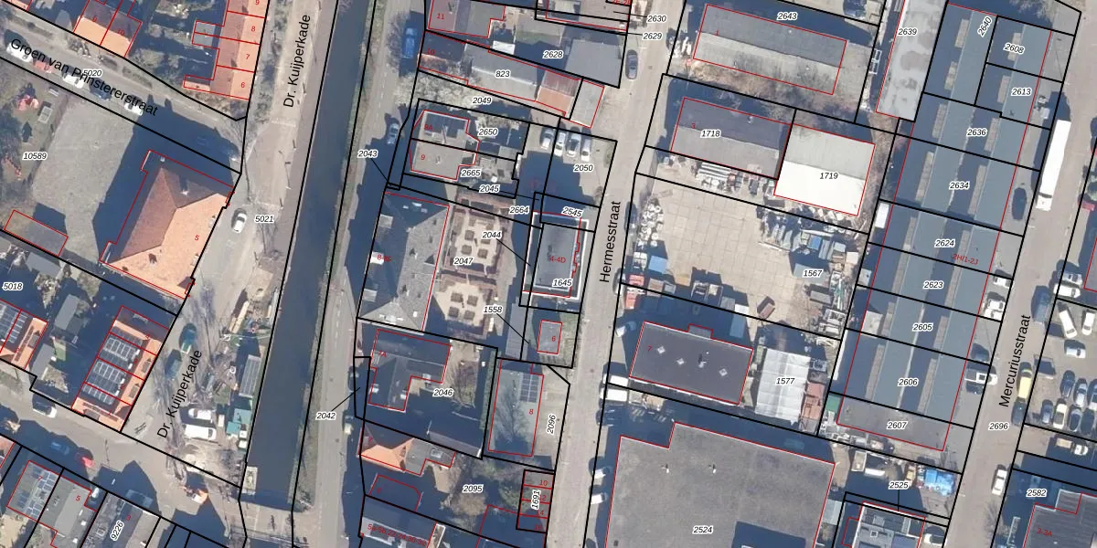 Hermesstraat 4-B is gelegen op kadastraal perceel KMN01A1645. Deze kadastrale aanduiding is uniek en wordt gebruikt door het Kadaster om eigendomsrechten en andere zakelijke rechten vast te leggen. Het perceel maakt onderdeel uit van de kadastrale gemeente Krommenie.