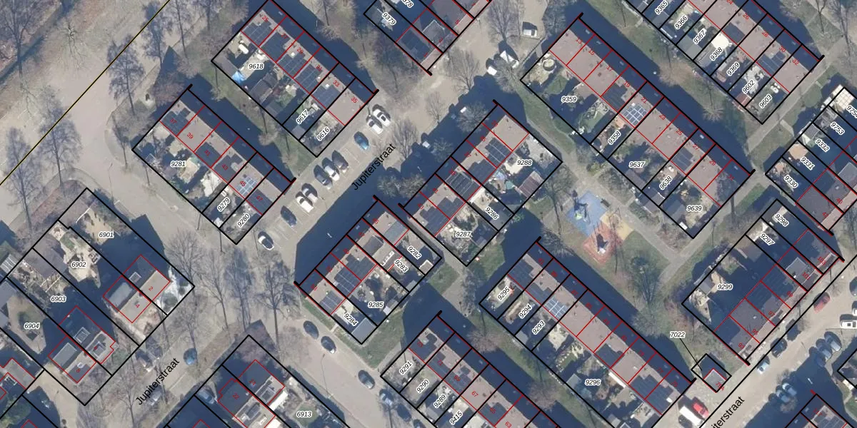 Het perceel waarop Jupiterstraat 43 staat heeft een oppervlakte van 222 m². Dit is een middelgroot perceel. De perceeloppervlakte wordt geregistreerd door het Kadaster. Gedetailleerde informatie over de maten van dit perceel kunt u vinden in het rapport Kadastrale kaart met maatvoering van Jupiterstraat 43.