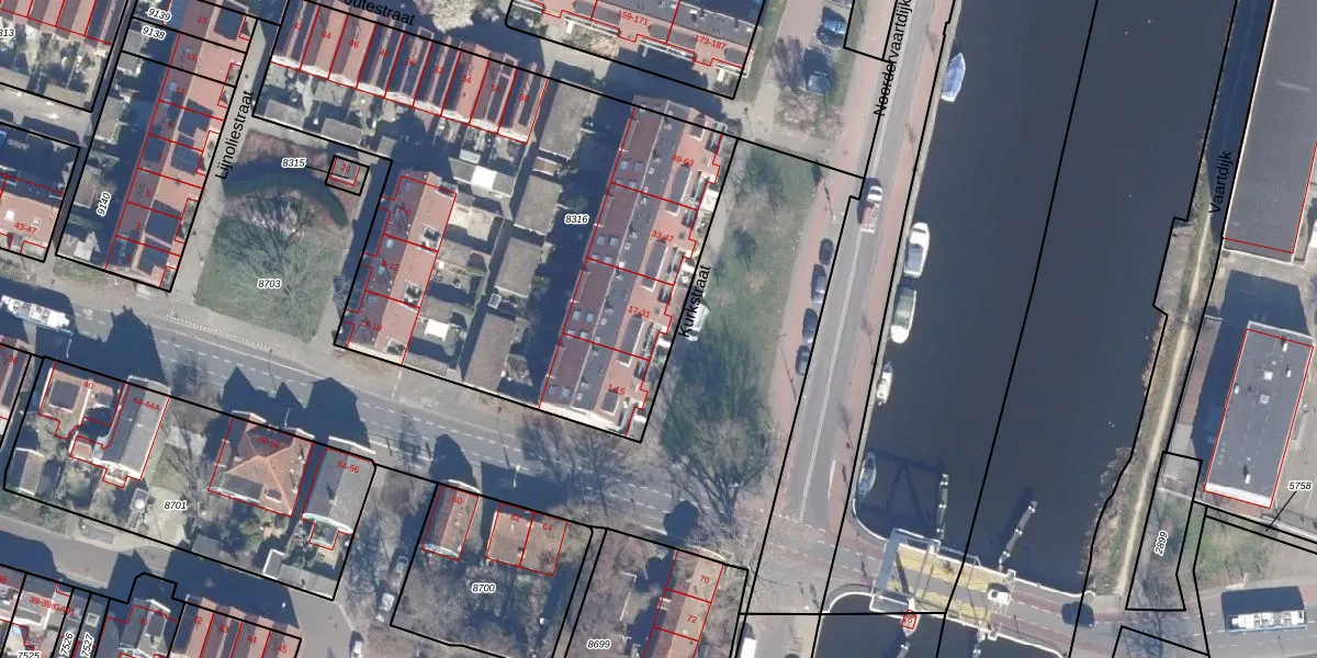 Kurkstraat 21 is gelegen op kadastraal perceel KMN01B8316. Deze kadastrale aanduiding is uniek en wordt gebruikt door het Kadaster om eigendomsrechten en andere zakelijke rechten vast te leggen. Het perceel maakt onderdeel uit van de kadastrale gemeente Krommenie.