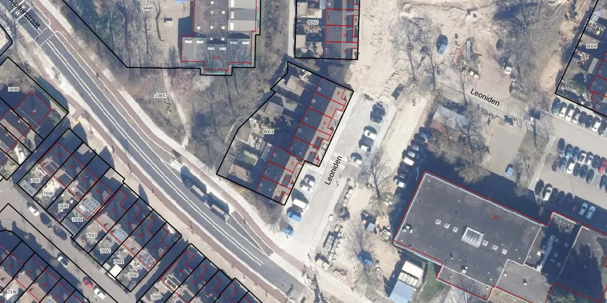 Het perceel waarop Leoniden 4 staat heeft een oppervlakte van 1096 m². Dit is een zeer groot perceel. De perceeloppervlakte wordt geregistreerd door het Kadaster. Gedetailleerde informatie over de maten van dit perceel kunt u vinden in het rapport Kadastrale kaart met maatvoering van Leoniden 4.