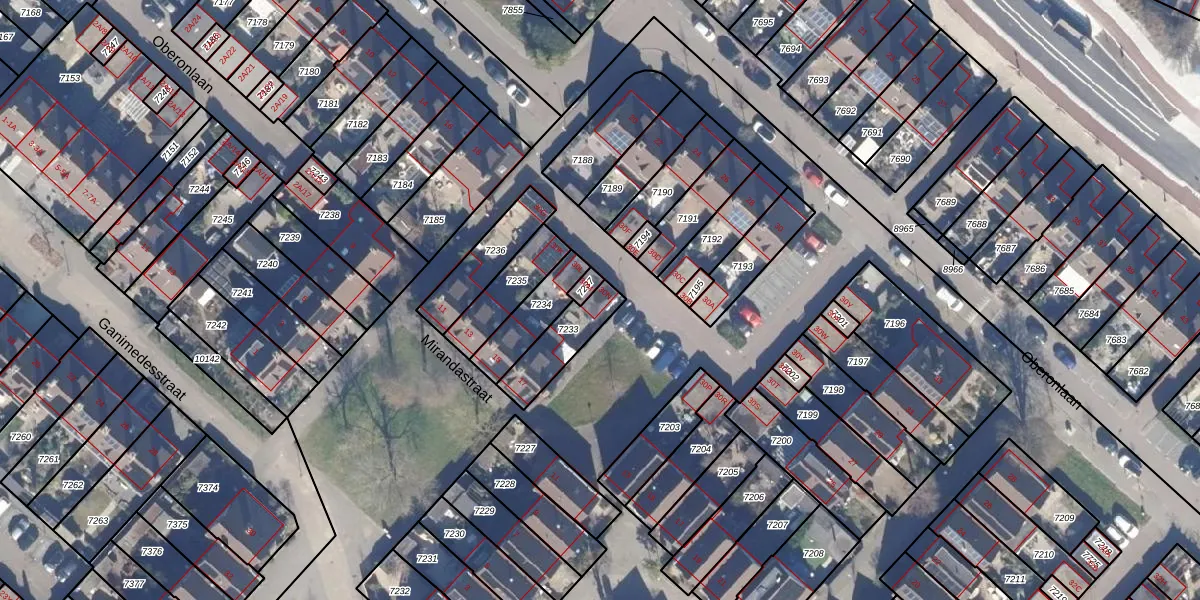 Het perceel waarop Oberonlaan 30-n staat heeft een oppervlakte van 148 m². Dit is een middelgroot perceel. De perceeloppervlakte wordt geregistreerd door het Kadaster. Gedetailleerde informatie over de maten van dit perceel kunt u vinden in het rapport Kadastrale kaart met maatvoering van Oberonlaan 30-n.