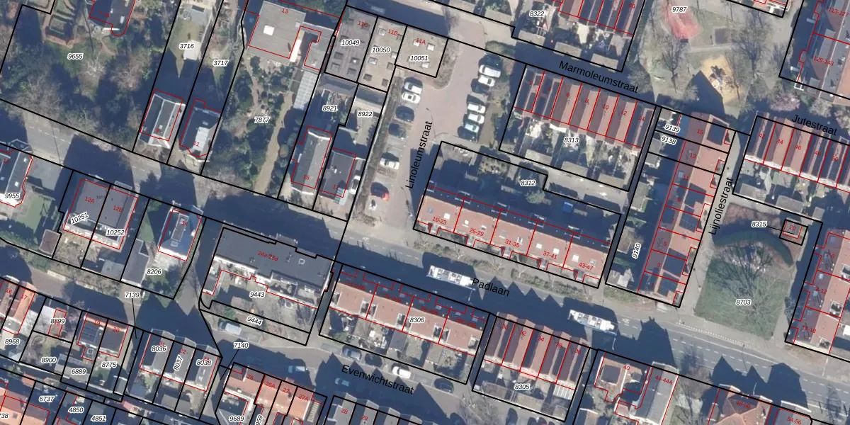 Het perceel waarop Padlaan 19 staat heeft een oppervlakte van 919 m². Dit is een groot perceel. De perceeloppervlakte wordt geregistreerd door het Kadaster. Gedetailleerde informatie over de maten van dit perceel kunt u vinden in het rapport Kadastrale kaart met maatvoering van Padlaan 19.