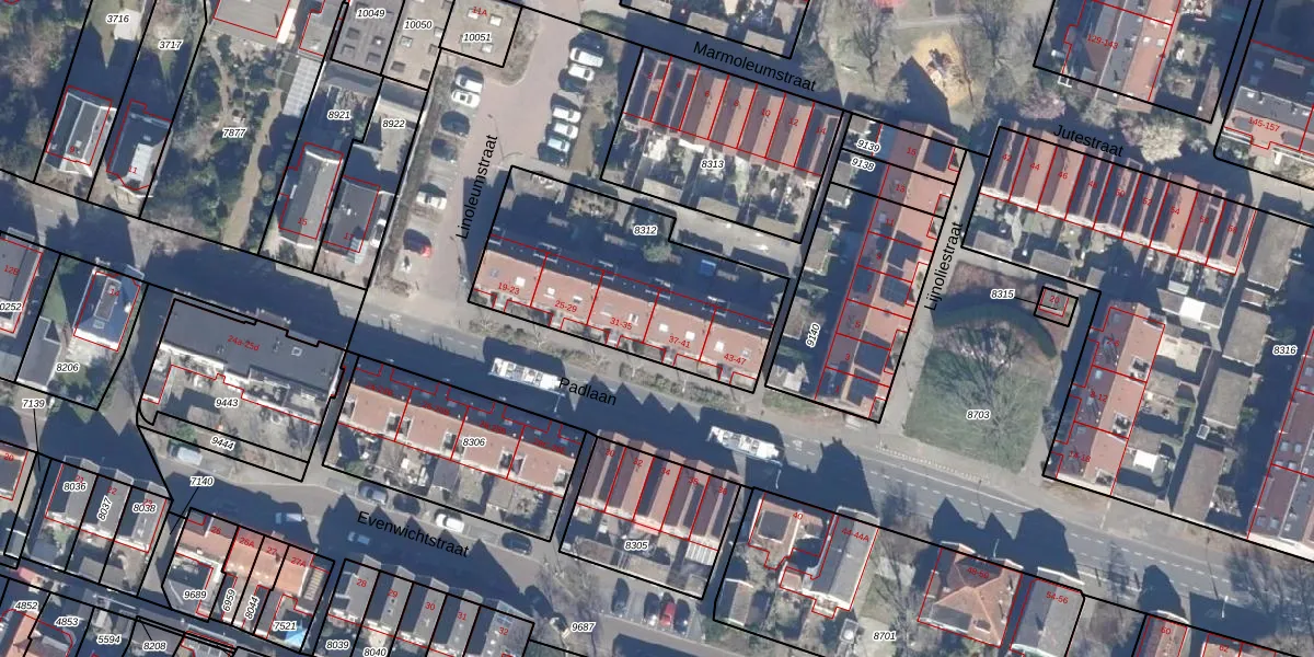 Het perceel waarop Padlaan 37 staat heeft een oppervlakte van 919 m². Dit is een groot perceel. De perceeloppervlakte wordt geregistreerd door het Kadaster. Gedetailleerde informatie over de maten van dit perceel kunt u vinden in het rapport Kadastrale kaart met maatvoering van Padlaan 37.