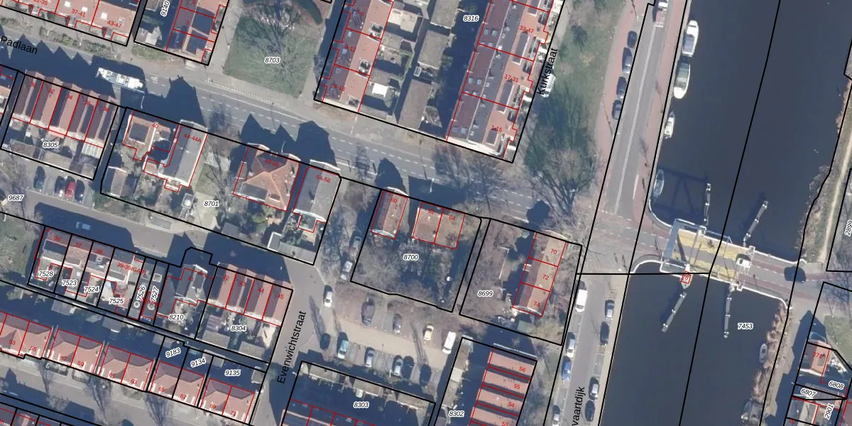 Padlaan 62 is gelegen op kadastraal perceel KMN01B8700. Deze kadastrale aanduiding is uniek en wordt gebruikt door het Kadaster om eigendomsrechten en andere zakelijke rechten vast te leggen. Het perceel maakt onderdeel uit van de kadastrale gemeente Krommenie.