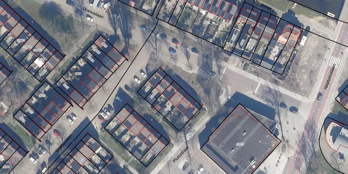 Het perceel waarop Uranuslaan 174 staat heeft een oppervlakte van 440 m². Dit is een groot perceel. De perceeloppervlakte wordt geregistreerd door het Kadaster. Gedetailleerde informatie over de maten van dit perceel kunt u vinden in het rapport Kadastrale kaart met maatvoering van Uranuslaan 174.