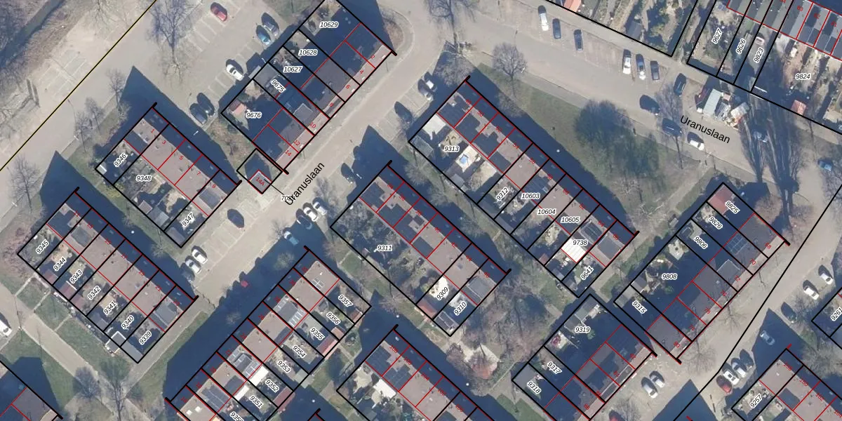 Het perceel waarop Uranuslaan 38 staat heeft een oppervlakte van 546 m². Dit is een groot perceel. De perceeloppervlakte wordt geregistreerd door het Kadaster. Gedetailleerde informatie over de maten van dit perceel kunt u vinden in het rapport Kadastrale kaart met maatvoering van Uranuslaan 38.