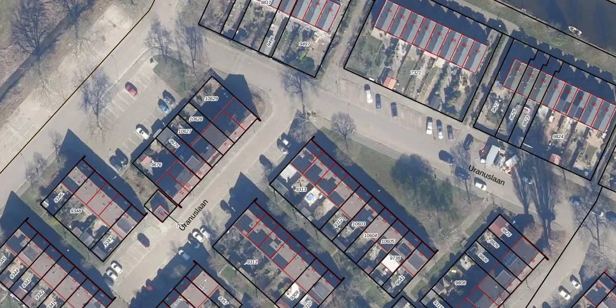 Het perceel waarop Uranuslaan 48 staat heeft een oppervlakte van 438 m². Dit is een groot perceel. De perceeloppervlakte wordt geregistreerd door het Kadaster. Gedetailleerde informatie over de maten van dit perceel kunt u vinden in het rapport Kadastrale kaart met maatvoering van Uranuslaan 48.