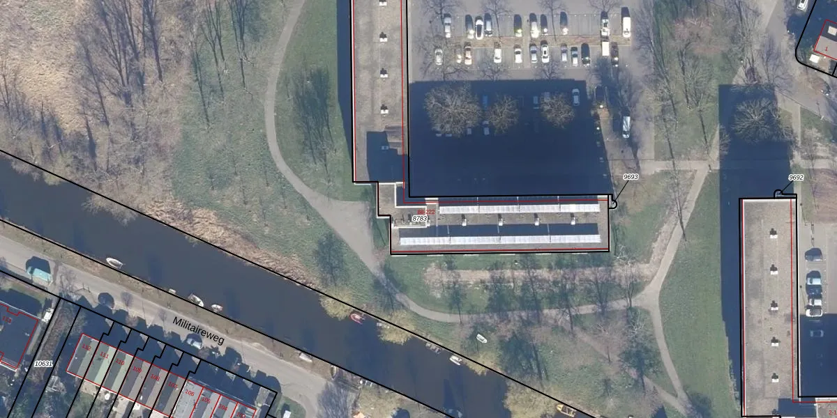 Het perceel waarop het adres ligt is KMN01-B-8783. De afkorting 'KMN01' staat voor kadastrale gemeente Krommenie. Het perceel is met 1684 m² relatief groot. Het gemiddelde ligt in de kadastrale gemeente Krommenie op 879,94 m². Het kleinste perceel in de kadastrale gemeente is 1 m² groot. De grootste perceeloppervlakte is 19,0 ha. Er zijn 83 adressen aanwezig op het perceel. De huidige grenzen van het perceel zijn digitaal in de Basisregistratie Kadaster (BRK) geregistreerd op 24-04-2013.