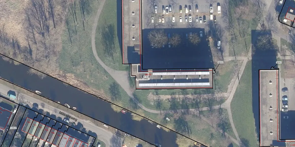 Het perceel waarop het adres ligt is KMN01-B-8783. De afkorting 'KMN01' staat voor kadastrale gemeente Krommenie. Het perceel is met 1684 m² relatief groot. Het gemiddelde ligt in de kadastrale gemeente Krommenie op 879,8 m². Het kleinste perceel in de kadastrale gemeente is 1 m² groot. De grootste perceeloppervlakte is 19,0 ha. Er zijn 83 adressen aanwezig op het perceel. De laatste wijziging in het de Basisregistratie Kadaster (BRK) was op 24-04-2013.