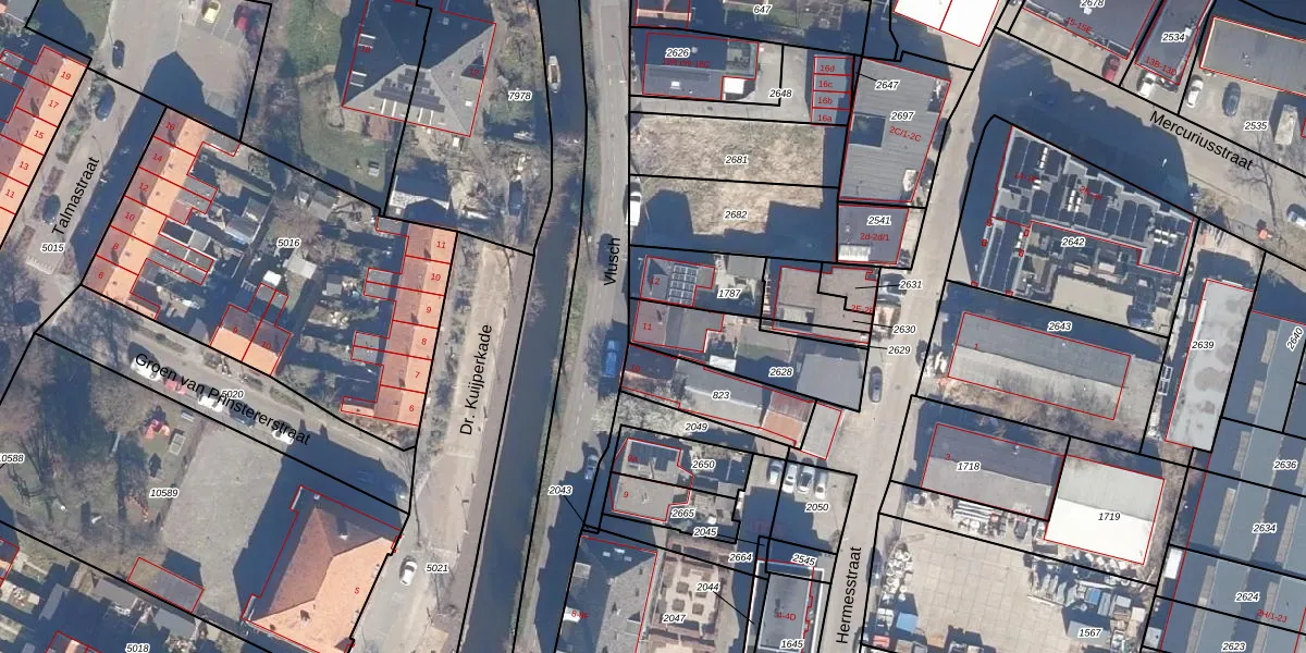 Het perceel waarop Vlusch 11 staat heeft een oppervlakte van 310 m². Dit is een groot perceel. De perceeloppervlakte wordt geregistreerd door het Kadaster. Gedetailleerde informatie over de maten van dit perceel kunt u vinden in het rapport Kadastrale kaart met maatvoering van Vlusch 11.
