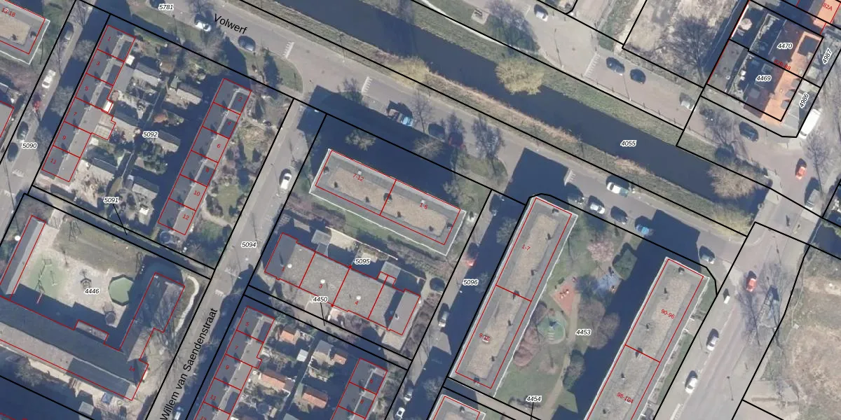 Het perceel waarop Volwerf 1 staat heeft een oppervlakte van 1943 m². Dit is een zeer groot perceel. De perceeloppervlakte wordt geregistreerd door het Kadaster. Gedetailleerde informatie over de maten van dit perceel kunt u vinden in het rapport Kadastrale kaart met maatvoering van Volwerf 1.