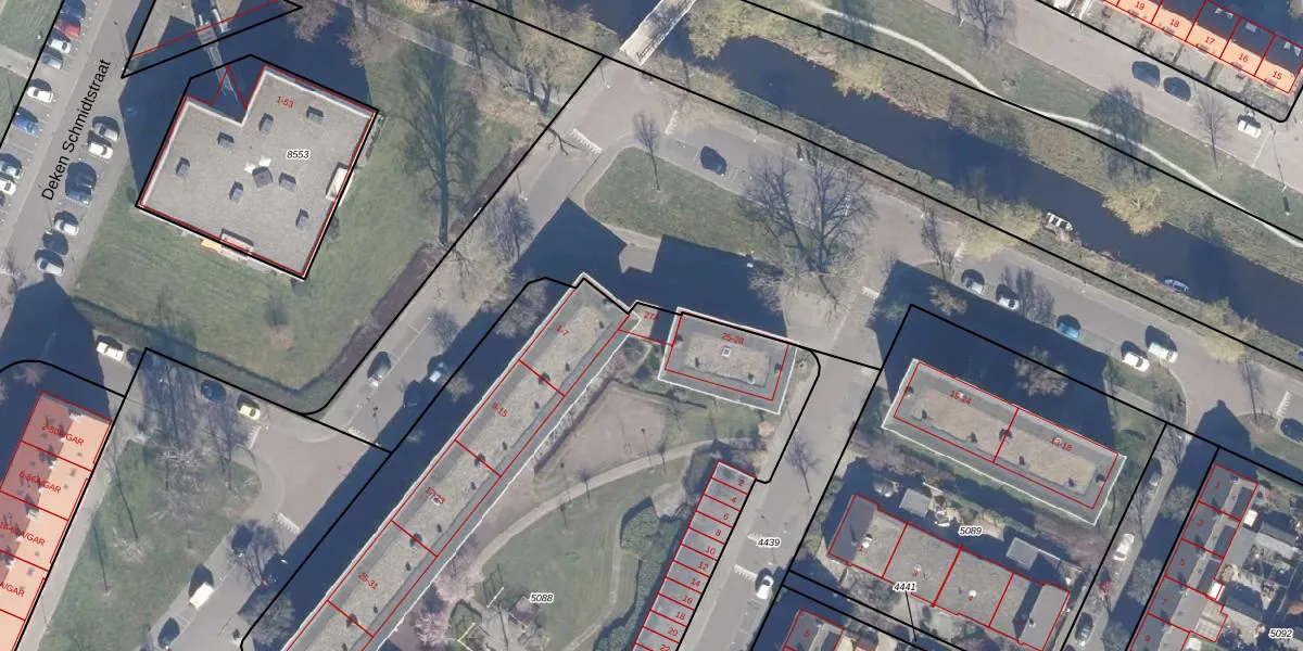 Het adres is gelegen op perceel 5088 in de sectie B en de kadastrale gemeente Krommenie. De kadastrale aanduiding is aldus KMN01-B-5088. De oppervlakte van het perceel is 4578 m². Dat is groter dan gemiddeld in Krommenie, waar de gemiddelde perceeloppervlakte op 879,8 m² ligt. Het kleinste perceel in de kadastrale gemeente is 1 m² groot. De grootste perceeloppervlakte is 19,0 ha. Er zijn 52 adressen aanwezig op het perceel. In de Basisregistratie Kadaster (BRK) werden de grenzen van het perceel geregistreerd op 22-01-2004.