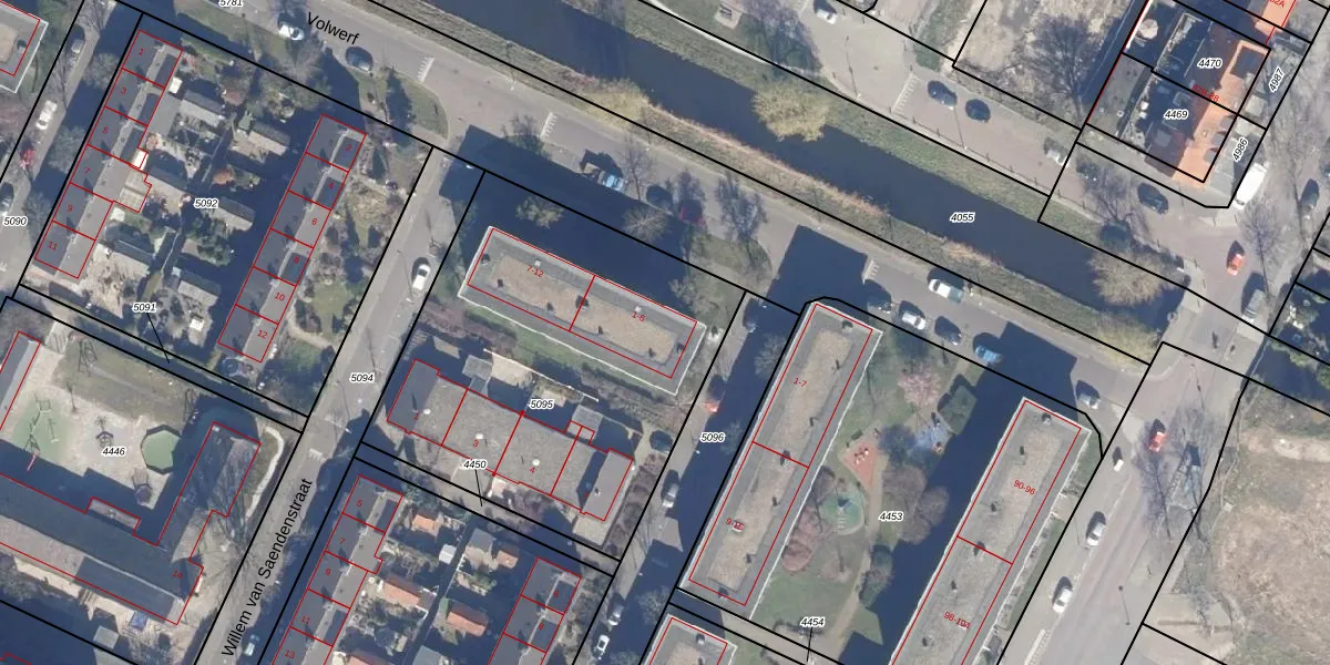 Volwerf 6 is gelegen op kadastraal perceel KMN01B5095. Deze kadastrale aanduiding is uniek en wordt gebruikt door het Kadaster om eigendomsrechten en andere zakelijke rechten vast te leggen. Het perceel maakt onderdeel uit van de kadastrale gemeente Krommenie.
