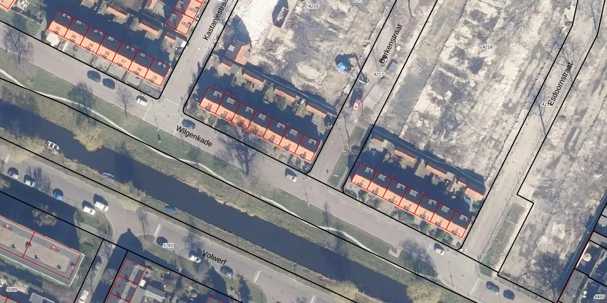 Wilgenkade 8 is gelegen op kadastraal perceel KMN01B4216. Deze kadastrale aanduiding is uniek en wordt gebruikt door het Kadaster om eigendomsrechten en andere zakelijke rechten vast te leggen. Het perceel maakt onderdeel uit van de kadastrale gemeente Krommenie.