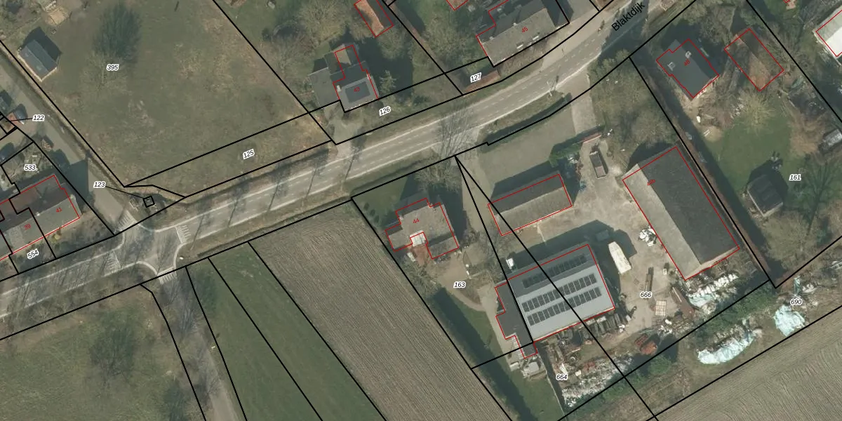 Het perceel waarop Blaktdijk 44 staat heeft een oppervlakte van 1032 m². Dit is een zeer groot perceel. De perceeloppervlakte wordt geregistreerd door het Kadaster. Gedetailleerde informatie over de maten van dit perceel kunt u vinden in het rapport Kadastrale kaart met maatvoering van Blaktdijk 44.