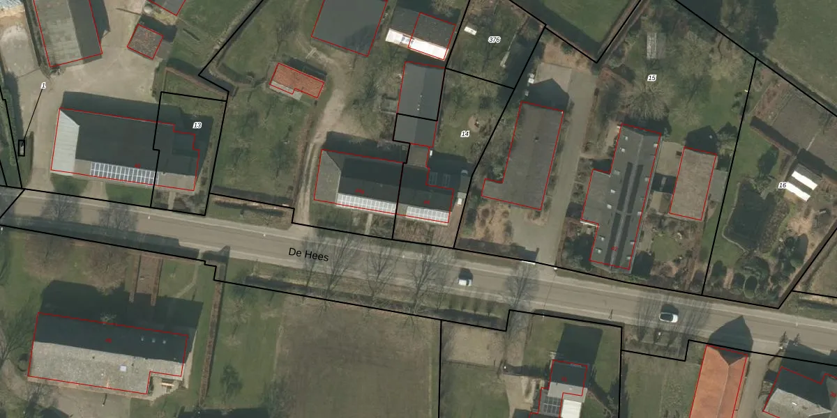 De Hees 44 is gelegen op kadastraal perceel SVN01R14. Deze kadastrale aanduiding is uniek en wordt gebruikt door het Kadaster om eigendomsrechten en andere zakelijke rechten vast te leggen. Het perceel maakt onderdeel uit van de kadastrale gemeente Sevenum.