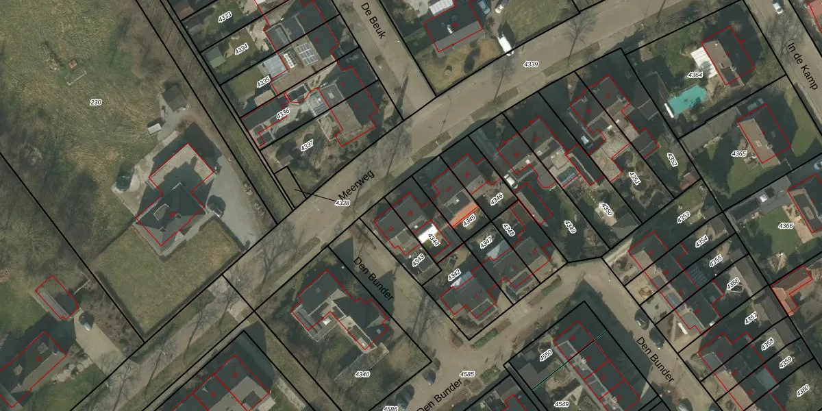 Meerweg 39 is gelegen op kadastraal perceel SVN01G4344. Deze kadastrale aanduiding is uniek en wordt gebruikt door het Kadaster om eigendomsrechten en andere zakelijke rechten vast te leggen. Het perceel maakt onderdeel uit van de kadastrale gemeente Sevenum.