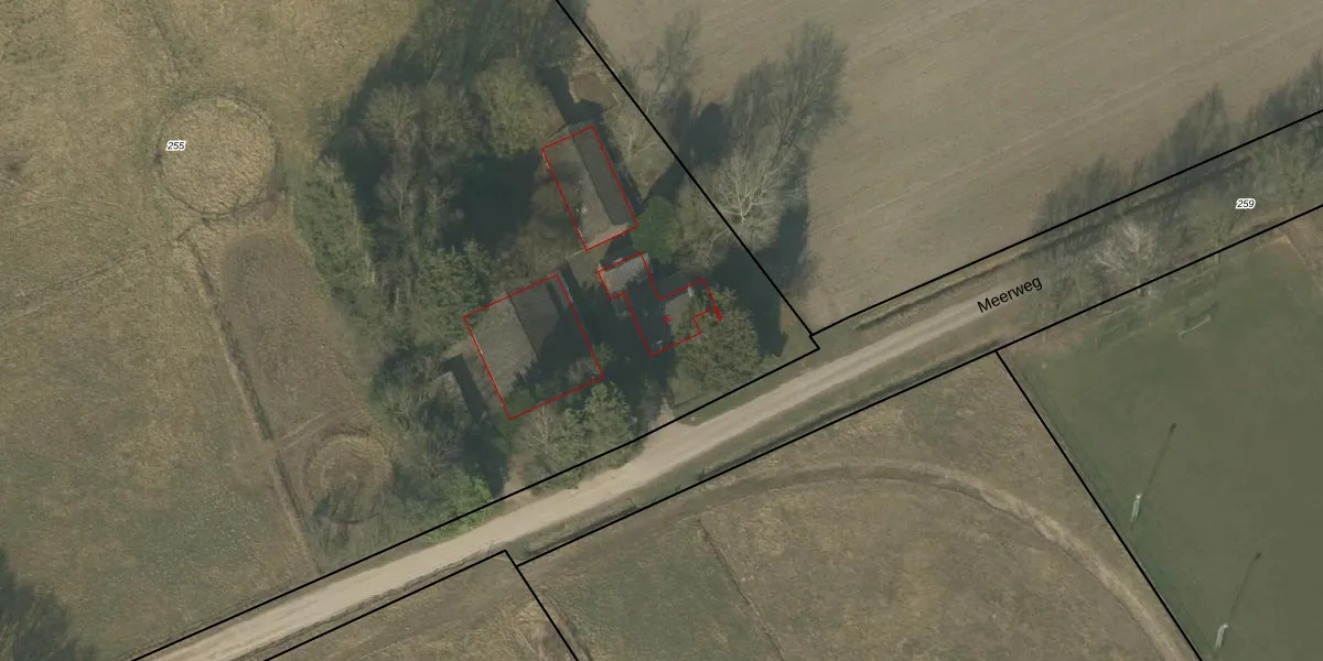 Het perceel waarop Meerweg 46 staat heeft een oppervlakte van 1,8 ha. Dit is een zeer groot perceel. De perceeloppervlakte wordt geregistreerd door het Kadaster. Gedetailleerde informatie over de maten van dit perceel kunt u vinden in het rapport Kadastrale kaart met maatvoering van Meerweg 46.