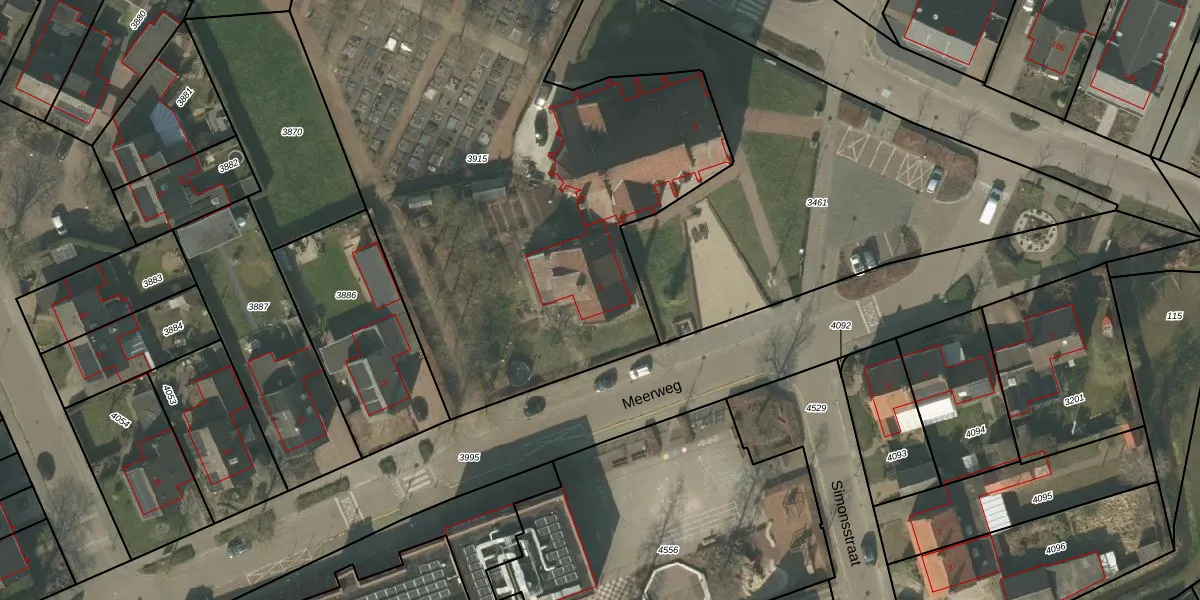 Meerweg 8 is gelegen op kadastraal perceel SVN01G3915. Deze kadastrale aanduiding is uniek en wordt gebruikt door het Kadaster om eigendomsrechten en andere zakelijke rechten vast te leggen. Het perceel maakt onderdeel uit van de kadastrale gemeente Sevenum.