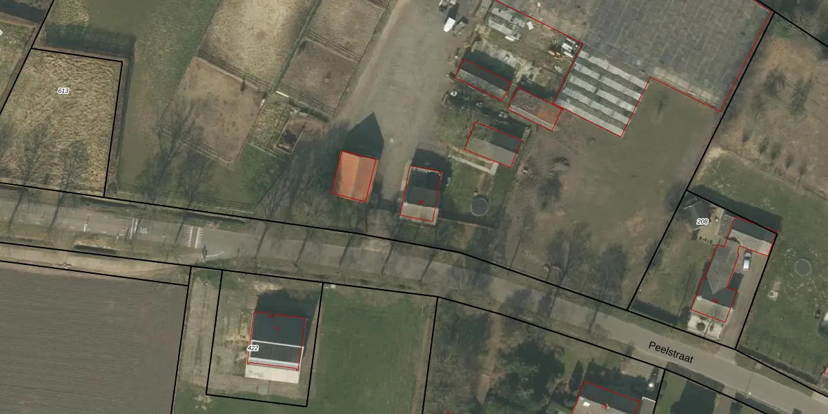 Het perceel waarop Peelstraat 30 staat heeft een oppervlakte van 2,1 ha. Dit is een zeer groot perceel. De perceeloppervlakte wordt geregistreerd door het Kadaster. Gedetailleerde informatie over de maten van dit perceel kunt u vinden in het rapport Kadastrale kaart met maatvoering van Peelstraat 30.