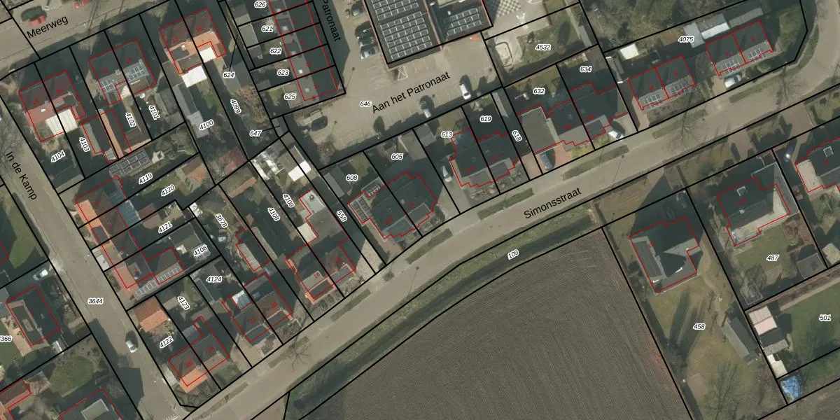 Simonsstraat 14 is gelegen op kadastraal perceel SVN01R605. Deze kadastrale aanduiding is uniek en wordt gebruikt door het Kadaster om eigendomsrechten en andere zakelijke rechten vast te leggen. Het perceel maakt onderdeel uit van de kadastrale gemeente Sevenum.