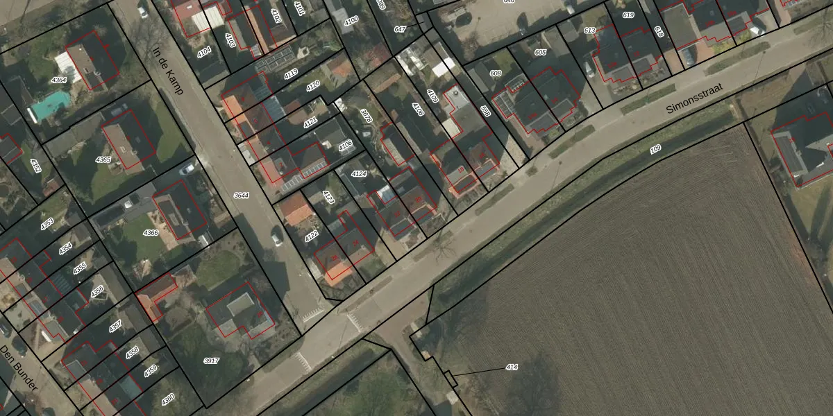 Simonsstraat 20 is gelegen op kadastraal perceel SVN01G3678. Deze kadastrale aanduiding is uniek en wordt gebruikt door het Kadaster om eigendomsrechten en andere zakelijke rechten vast te leggen. Het perceel maakt onderdeel uit van de kadastrale gemeente Sevenum.